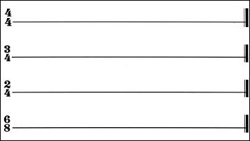 Probeer in onderstaande maatsoorten zelf eens een aantal syncopische ritmes te ontwerpen.
