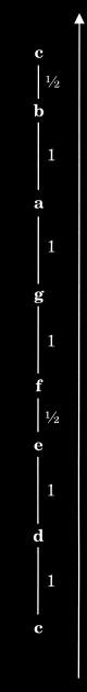 De afstand in hoogte tussen c-d, d-e, f-g, g-a, a-b is altijd een hele afstand. De afstand tussen e-f en b-c is altijd een halve afstand (zie overzicht absoluut systeem).