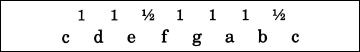 Zoals je weet, zijn de afstanden in hoogte tussen de tonen van het absoluut systeem net zo opgebouwd als bij het relatief systeem. De toonladder van c geeft een overzicht: