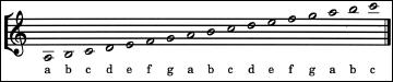 Dit is een vijflijnige balk. Als je een noot hoger op deze balk plaatst, dan klinkt deze ook hoger.